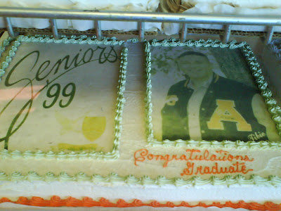 The '99 grad cake freaks me out. You can see where some decorations were on the Seniors side and all I can think is that they pulled them off several years later for another cake... ewww...